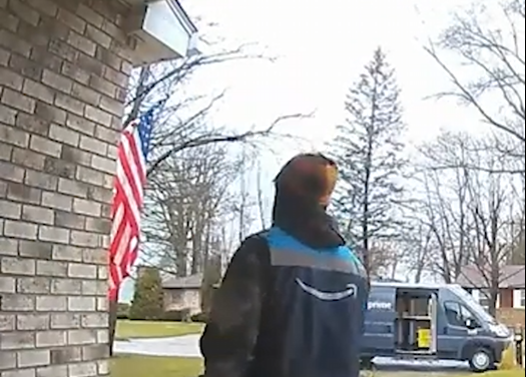 While walking up to a house to drop off a package, an Amazon driver noticed something unusual—a tangled American flag. Instead of simply delivering the package and moving on, he took a moment to fix the flag, carefully adjusting it until it hung properly. But it didn’t stop there. Before leaving, the driver stood still for a brief moment and saluted the flag before continuing on his route.