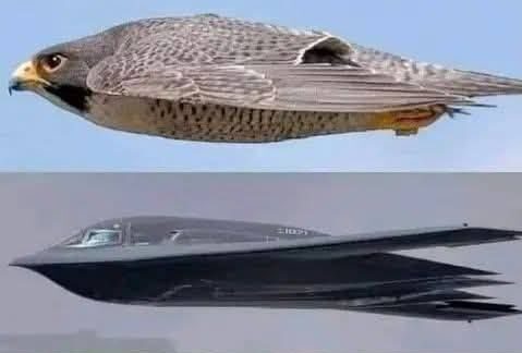 The Peregrine Falcon is famous for reaching speeds over 300 mph during its hunting dive — faster than a Formula 1 car and nearly anything else in the animal kingdom. What makes this bird even more incredible is how closely its streamlined body resembles the legendary B-2 bomber.