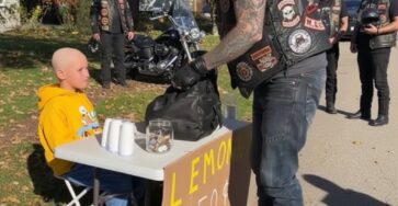 Bikers Stop After Noticing the Hidden Message on a Young Boy’s Lemonade Stand