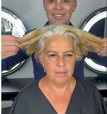 When a woman walked into a salon with hair that was half blonde and half white, she was ready for a change—but she couldn’t have predicted the transformation that awaited her. Years of coloring had left her hair uneven, with fading blonde tones clashing against natural white strands.