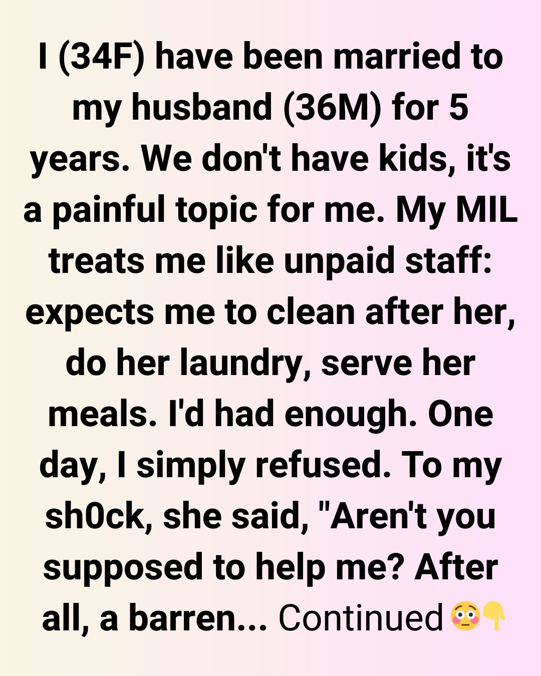 I Refuse to Be My MIL’s Free Maid, Especially After She Called Me “Barren”