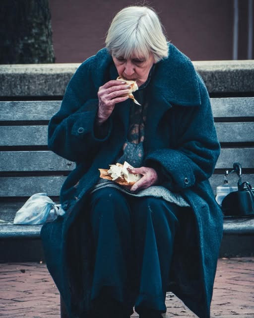 An elderly woman slipped onto the bench beside her. She moved carefully, as though she didn’t want to disturb anyone, her coat missing a button and her hands folded tightly in her lap. When her eyes drifted to Ana’s sandwich, there was no demand in her look, only a quiet longing.