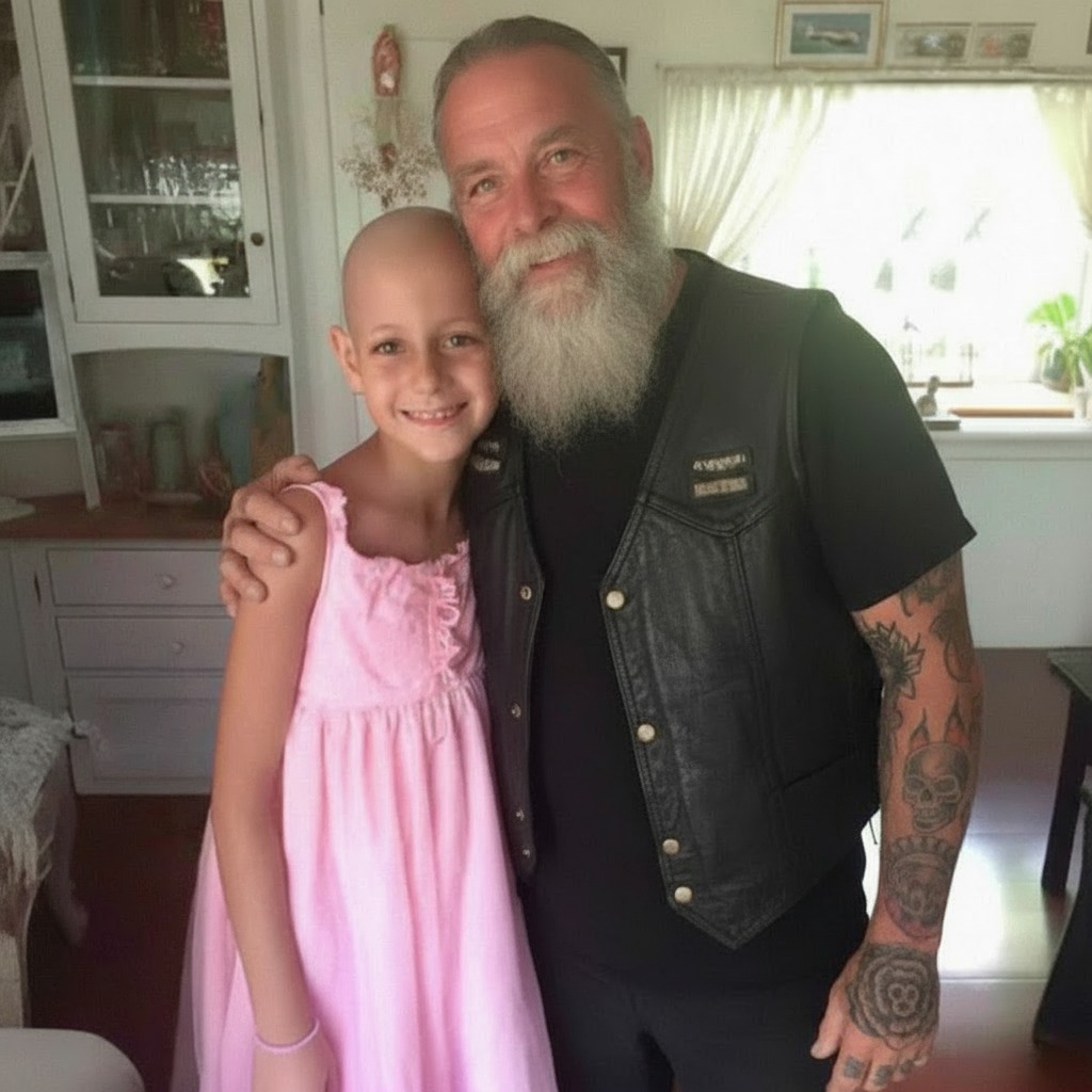 Weeks later, at a gas station after a long hospital visit, Emma saw him. A massive, tattooed biker standing by his motorcycle. He was intimidating, rough-looking, but Emma didn’t hesitate. She walked up to him and asked, simply, “Would you be my daddy for one day?”
