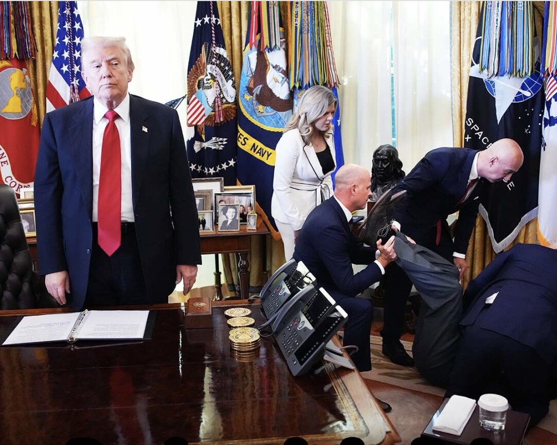 People are losing it at Trump’s reaction as guest collapses in the Oval Office during press conference