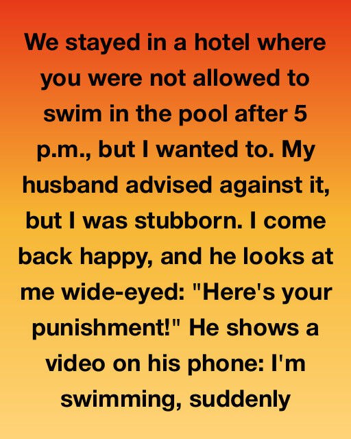I scrambled out of the pool, heart racing. When I burst back into our room, dripping wet, Ben’s face was pale. “Here’s your punishment,” he said, holding up his phone.