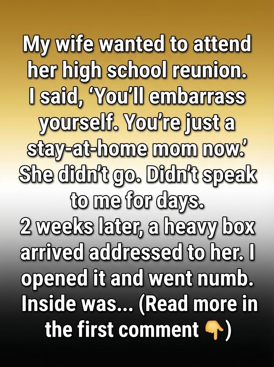 When my wife casually mentioned her upcoming high school reunion, I responded without thinking. My words were careless, almost automatic: “It might feel uncomfortable now… you’re ‘just’ a stay-at-home mom. Maybe you won’t fit in anymore.”