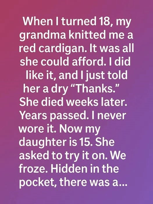When I turned 18, my grandma handed me a red cardigan — hand-knitted, simple, nothing flashy. I smiled, mumbled, “Thanks,” and that was it.